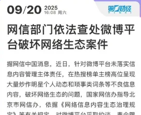 据悉,监管部门指出,作为国内主要的社交媒体与短视频平台,微博和快手拥有庞大的用户群体和极强的舆论引导力。然而在信息流和热搜榜管理上,平台长期纵容娱乐炒作、无底线话题占据公共空间,导致网络空间被劣质内容淹没,挤压了公共议题、社会关切和优质文化内容的传播空间。这不仅违反了平台应当承担的社会责任,也破坏了清朗的网络生态。
