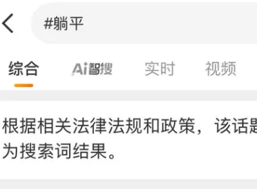 唐人日报6月19日讯:近日,有网友发现,“#躺平”这一在网络上广为流传的热门词条在微博平台已无法正常搜索,相关话题页面也被屏蔽,疑似遭到封禁。消息迅速在其他社交平台引发热议,不少网民质疑,这是否意味着连表达对现实的无力感都成了“敏感言论”。