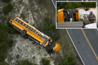 德州公共安全部中士比利·雷介绍,事发时校车正沿一条乡村公路行驶,出于“尚未查明的原因”突然向右偏离,随后翻倒在路旁。现场视频显示,黄色校车侧身躺在路边,车顶严重受损,多扇窗户被震碎,周围散落着碎玻璃与残片。