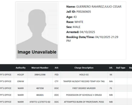 唐人日报6月24日讯:据“非法移民犯罪”平台(@ImmigrantCrimes)报道,德克萨斯州福遍县警方上周逮捕了一名涉嫌一级谋杀的非法移民——胡里奥·塞萨尔·格雷罗·拉米雷斯(Julio Cesar Guerrero Ramirez)。他目前已被移民与海关执法局(ICE)接管,处于联邦拘留状态。