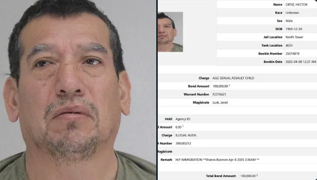 唐人日报5月12日讯:德克萨斯州达拉斯县执法部门上月逮捕了一名非法移民赫克托·奥尔蒂斯(Hector Ortiz),其被控犯下严重儿童性侵罪,目前已被移交美国移民与海关执法局(ICE)羁押,等待后续法律程序。