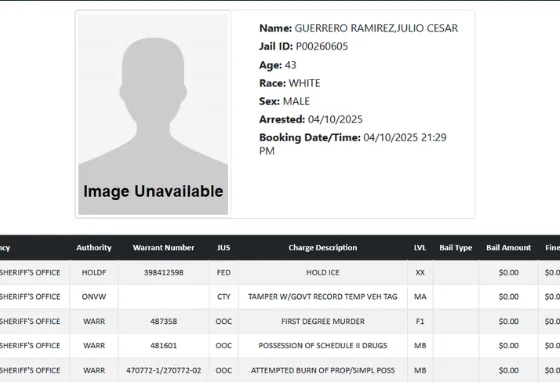 唐人日报4月17日讯:上周,非法移民胡里奥·塞萨尔·格雷罗·拉米雷斯(Julio Cesar Guerrero Ramirez)因涉嫌一级谋杀罪在福遍县被捕。目前,他已被移交美国移民与海关执法局(ICE)羁押,等待进一步移民程序处理。