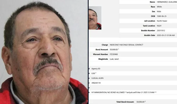 唐人日报4月27日讯:德克萨斯州达拉斯县消息,上月,非法移民吉列尔莫·埃尔南德斯(GuilermoHernandez)因涉嫌对儿童进行性猥亵接触被捕,目前已被移民与海关执法局(ICE)拘留。
