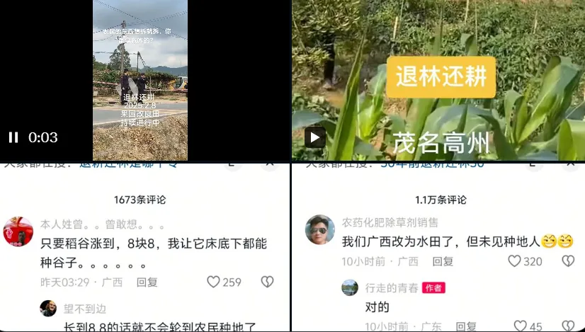 有农民感慨道:“如果水稻卖8.8元一斤,我床底下都给国家种水稻。”另一位则表示,“我们广西也改为水田了,但田里没有种地的人。”这一政策引发了当地农民的痛心与反思,许多人质疑政策实施是否真正考虑到农民利益。