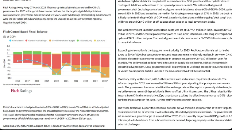 惠誉在报告中进一步指出,政府债务的增加和经济增长的放缓可能会相互作用,形成负面循环。虽然中央政府采取了一系列政策措施以刺激经济,包括加大财政支出和提供税收优惠等,但这些措施的长期效果仍需观察。