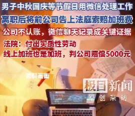 唐人日报10月11日讯:节假日用微信回复工作信息,也属于加班。近日,武汉东湖高新区法院的一项判决引发社会热议。离职工程师王先生(化名)状告前公司,要求支付其两年多来通过微信等社交平台进行工作的加班费。法院最终认定:在休息时间通过社交媒体完成工作任务,属于“实质性劳动”,用人单位应依法支付报酬。