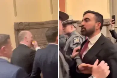 唐人日报3月14日讯:周三,纽约州议会大厦外爆发支持非法移民的抗议活动,民主党立法者和活动人士试图对特朗普政府移民政策的代表人物、“边境沙皇”汤姆·霍曼(Tom Homan)施压。然而,面对示威人群的愤怒喊声,霍曼镇定自若,边走边吃苹果,丝毫不受影响。