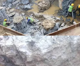举报人称,该公司作为该项目的监理单位,在明知桩基存在严重质量缺陷的情况下,仍然出具“验收合格”的虚假结论。曝光的现场照片令人触目惊心:部分桩基钢筋稀疏裸露,根部已经断裂,结构松散而脆弱;地桩表面土质松散,钢筋分布极为不均,有的甚至明显弯曲变形。整体支撑力远远不足,随时可能在高压荷载下出现坍塌风险,堪称重大安全隐患。