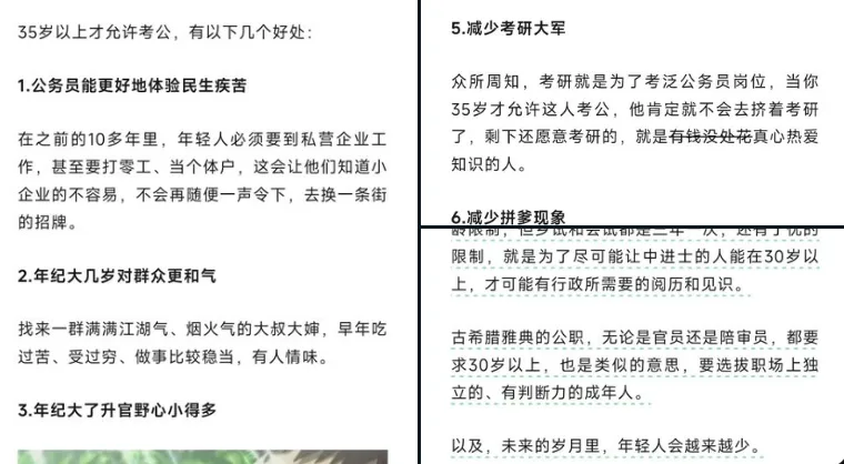 这一提议在社会上引起了激烈的讨论。一些人认为,这能够使公务员队伍更成熟、更稳定,而其他人则担心这可能会导致年轻人失去公平竞争的机会,甚至加剧职场年龄歧视。