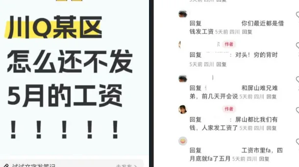 唐人日报5月14日讯:四川宜宾一名网友在社交平台爆料称,当地部分机关单位近期已出现“靠借钱发工资”的现象,引发广泛关注与热议。该消息迅速在网络传播,成为当前地方财政困境的又一写照。