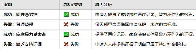 - 迫害基于群体身份:申请人必须证明其迫害直接源于其社会群体身份,而非其他原因。