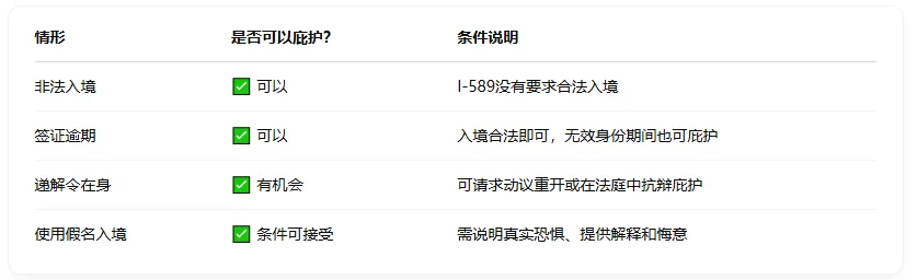 五、尽管有递解记录或非法入境,也可以申请庇护的情形