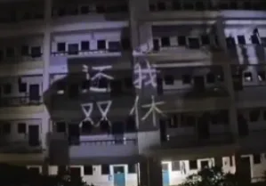 唐人日报8月19日讯:南宁市邕宁高中再度爆发学生集体维权事件。夜幕之下,教学楼上一条横幅赫然出现——“还我双休”四个大字在灯光下格外刺眼。紧接着,数百名学生从宿舍楼和教室里齐声呐喊,声音此起彼伏,响彻校园上空,直指校方变相强制补课的长期乱象。