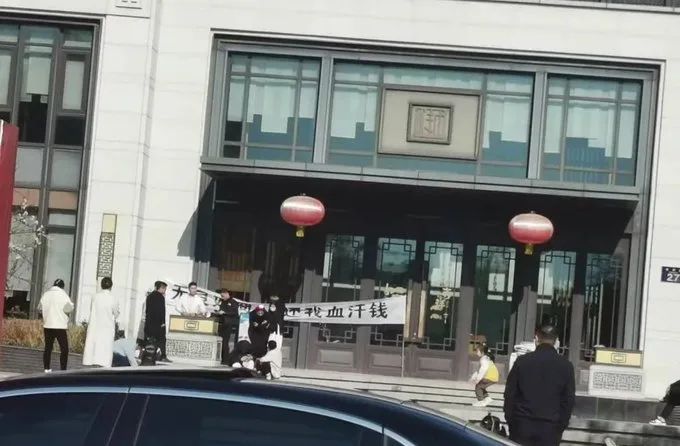 唐人日报11月27日讯:近日青岛高新区新城云樾晓院三期售楼处发生讨薪事件。多名疑似楼盘销售人员拉横幅维权,横幅上写着“无良奸商 还我血汗钱”,并通过小喇叭喊话“欠债还钱 把佣金还给我们”等口号,引发路人围观。讨薪人员称开发商拖欠佣金多时,导致生计困难。事件引发社会对房产行业佣金结算问题的关注,相关部门尚未对此作出回应。