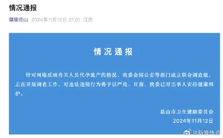 唐人日报11月13日讯:近日,昆山市卫健委通报,针对网络曝出18岁女生卖卵、19岁代孕流产事件,已成立联合调查组开展调查。