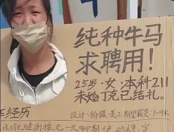 昆明25岁女子街头“挂牌求职”:愿凌晨加班、35岁自退,只要3-4K薪资