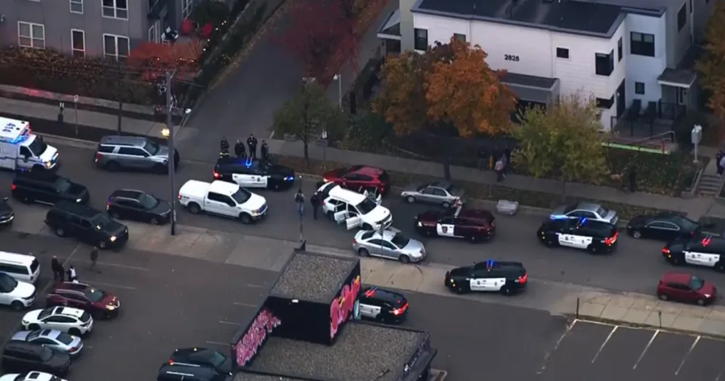 现场视频显示,大批警力在交叉路口部署,警车闪灯密布,周边街区一度封锁。附近居民表示,听到多次轮胎爆裂声和警笛声,“场面就像电影追逐战一样紧张”。
