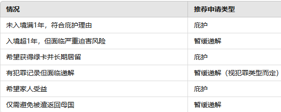 - 暂缓递解: 无时限要求,通常作为庇护失败后的“防御性申请”在递解程序中提出。