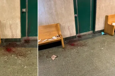 唐人日报1月29日讯:纽约曼哈顿刑事法院走廊发生一起帮派冲突,导致两人被砍伤,现场血迹斑斑。执法部门消息人士透露,事件发生在中午12点15分,法院官员随后拘留了七名嫌疑人,并在现场找到两件尖锐武器。