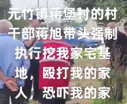 唐人日报10月14日讯:江苏省泰兴市元竹镇蒋堡村爆出一起引发舆论震动的事件。多名村民反映,当地村干部蒋旭涉嫌带头强行挖掘村民宅基地,并在冲突中对村民家属实施殴打与恐吓。事件曝光后,村民愤怒质问:“干部不是为民办事的吗?凭什么拿权力欺人?”