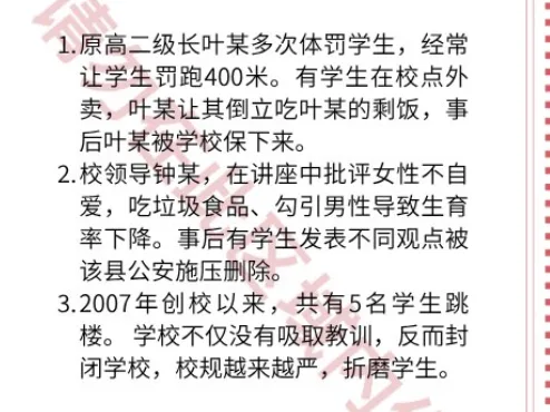 教育不应成为伤害的工具。这所学校的沉疴积弊亟待彻查,公众呼吁上级教育部门立即介入,严肃调查责任,保障学生基本尊严与生命安全。