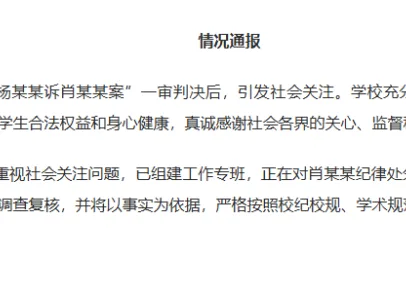 唐人日报8月4日讯:近日,“杨某某诉肖某某案”一审判决结果公布后,引发广泛社会关注与热议。作为案件涉事学生所在学校,武汉大学发布公告表示,学校充分尊重司法机关的判决结果,将全力维护学生的合法权益和身心健康,并真诚感谢社会各界对事件的关心、监督与批评。