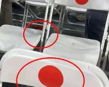 当天,为了引导身着红色文化衫的学生按照预先安排的座位就坐,以便在观礼视角拼出 “WHU”“1893” 等字样,现场工作人员在部分座椅靠背上贴上了红色圆形标签作为定位标记。由于大多数座椅为白色椅背,红色圆点恰好位于中央,从视觉效果上极易让人联想到日本国旗。部分蓝色座椅上也有同类标记,但在现场流出的照片中,画面主体集中于白色椅背与红点的组合,因而迅速引发了舆论争议。