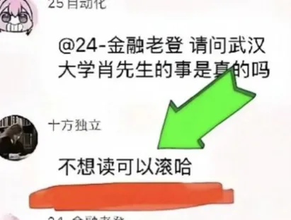 武大新生群炸锅!新生问“肖某事件”遭学长怒喷:不想读可以滚