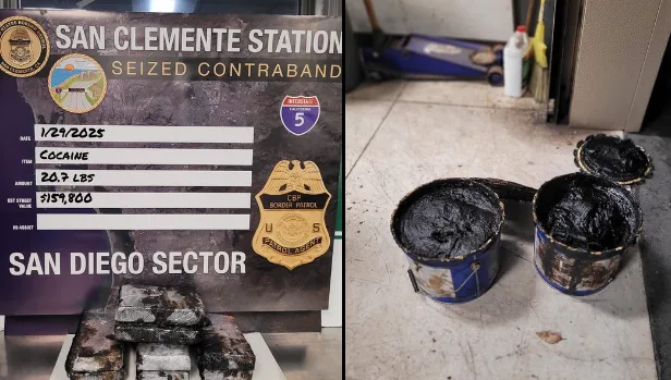 唐人日报2月7日讯:近日,美国边境巡逻队在加州圣地亚哥地区成功查获一起毒品走私案,缴获 20 多磅可卡因,黑市价值超 16 万美元。此次行动由圣克莱门特站(San Clemente Station)执法人员执行,他们在例行检查时,在两个焦油桶内发现了精心隐藏的毒品。