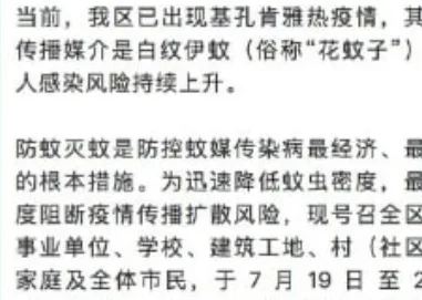 唐人日报7月24日讯:据多家权威媒体综合报道,广东佛山已累计确诊超2000例基孔肯雅热病例,疫情形势严峻,防控压力陡增。多区县政府紧急发布《告全体市民书》,号召全民参与防蚊灭蚊,全力阻断病毒传播链。