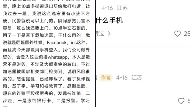 唐人日报4月18日讯:近日,一则网友自述在社交平台引发关注。该网友表示,因从事外贸行业,需通过翻墙软件登录海外社交平台与客户沟通,然而却在深夜被警方上门“教育”,引发公众对网络监管与个人隐私界限的讨论。