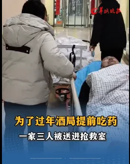 唐人日报2月5日讯:近日,江苏徐州发生一起因药物与酒精混合引发的急救事件。一家三口为参加春节酒局,提前服用了药物。老人服用降压药,儿子和女婿则服用护肝药,随后三人共喝下三斤白酒,并混合啤酒与洋酒。