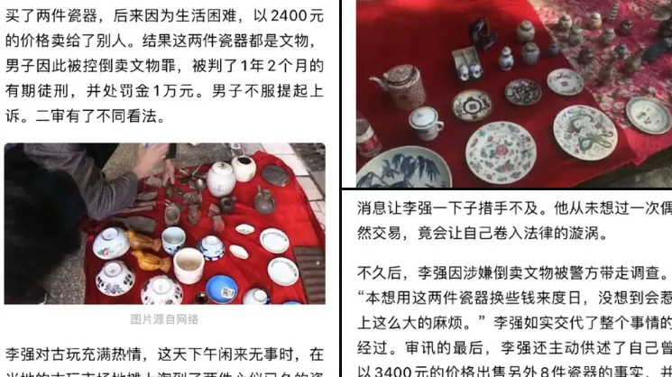 唐人日报2月4日讯:近日,江西人李强在古玩市场以1800元价格购得两件瓷器,因经济困难在疫情期间转售。然而,警方调查发现,所售瓷器为三级文物,李强因此被检方以强制倒卖三级文物罪提起公诉。李强的律师表示,文物作为宝贵财富,法律红线不可触碰,任何转售行为都需遵循文物保护法律。