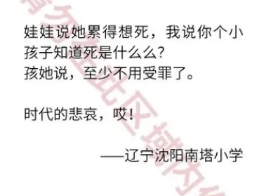 沈阳南塔小学一孩童吐露“想死”:一句童言刺痛时代的良心