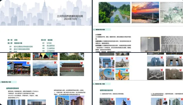 事件源于一份网传的《三河市规划建设管理导则》。导则内容覆盖广泛,从城市整体风貌到细节规范应有尽有,不仅对建筑风格、景观布局提出“风水协调”要求,还对商铺门头颜色、井盖样式甚至广告字体都作出明确限制。