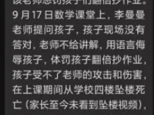 唐人日报9月24日讯:河南省洛阳市三山学校发生一起悲剧。八年级学生程怡嘉在校期间从四楼坠下,经全力抢救仍不幸身亡。消息一经传出,迅速在社会引发震动。家属控诉,孩子并非精神异常或身体有恙,而是长期遭遇班主任兼数学教师李曼曼的言语羞辱与惩罚性作业压力,最终被逼至绝境。