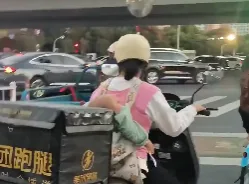 唐人日报9月1日讯:河南街头的一幕引发大量网友关注与讨论:一位年轻母亲背着年幼的孩子,穿梭在烈日下送外卖。视频显示,她骑着电动车,后背绑着布带,紧紧固定着熟睡的孩子。车厢前方挂着外卖箱,她则低头盯着导航,匆匆赶往下一单的送餐地点。