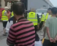 据视频内容显示,数名身穿绿色马甲的人员与工人发生肢体冲突。工人们举着账本、对着镜头声讨,称工资被拖欠已久,生活陷入困境。过程中,有工人被推搡倒地,随即跪下抱住“绿马甲”人员的大腿,哭喊着“给我们工钱”,现场氛围一度混乱。围观群众不断高声指责,情绪激烈。