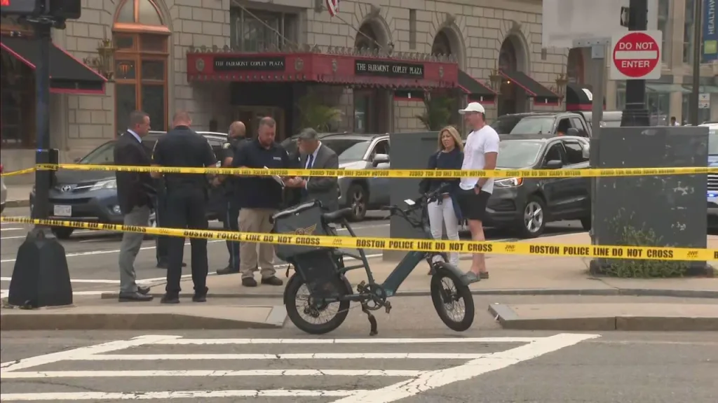 事故发生在上午11点左右,靠近费尔蒙科普利广场酒店。当时,该名男性行人正在通过人行横道,突然被一辆正在执行送餐任务的电动自行车撞上。目击者称,男子倒地后“毫无反应”,现场一度陷入恐慌。