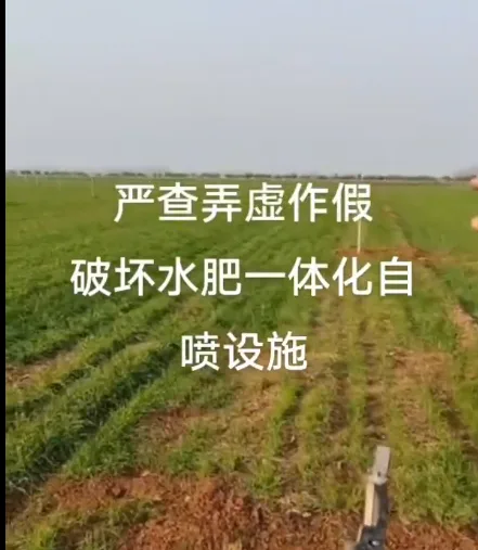 唐人日报2月27日讯:近日,山东泰安李大羊村村民爆料称,2022年投资千万元建设的800亩高标准农田项目存在严重弄虚作假问题。村委会为了应付检查,将原本应提供灌溉功能的喷水装置设置为假,所有喷水设施均未投入使用。村委书记甚至为应付检查,将水管直接插进土里做样子,企图掩盖工程质量问题。