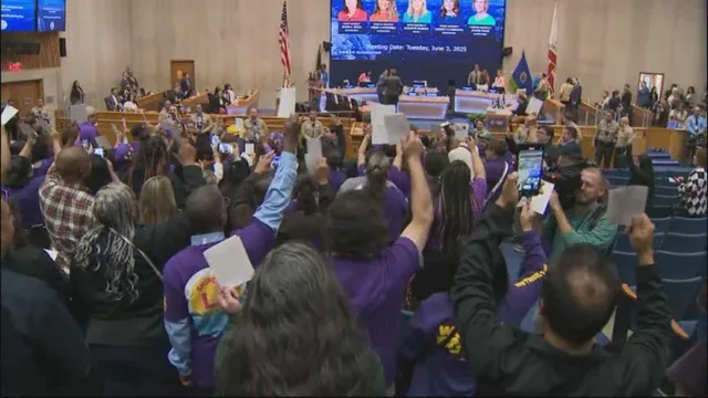 唐人日报6月4日讯:洛杉矶县与工会之间的劳资纠纷再度升级。在一场县监事会会议中,多名服务雇员国际工会(SEIU)成员因拒绝离开现场,被警方逮捕。