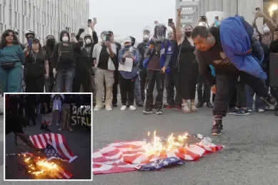洛杉矶反ICE骚乱再升级:抗议者焚烧国旗,高喊“F**k特朗普”