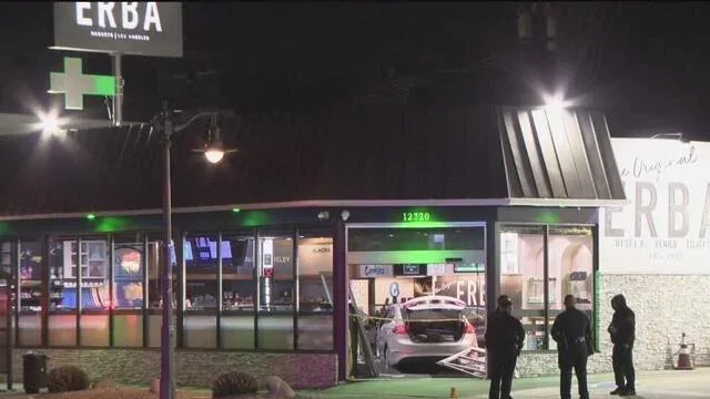洛杉矶警察局称,事发于凌晨3点15分,地点位于Pico Boulevard和Sawtelle Avenue的ERBA Markets大麻药房。保安报告称,一名25岁男子戴着滑雪面罩,驾车撞入店面,疑似试图入室盗窃。