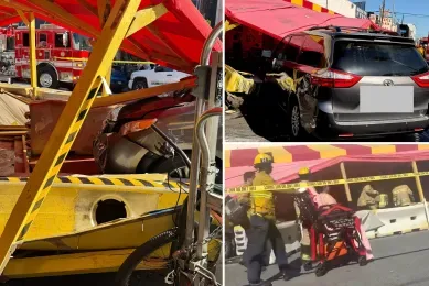 事故发生在枫树大道与第12街交界的Santee Alley购物区。目击者拍摄的视频显示,一辆面包车突然冲上人行道,撞上入口处建筑结构,现场人群四散、遮阳篷坠落,场面惊悚。
