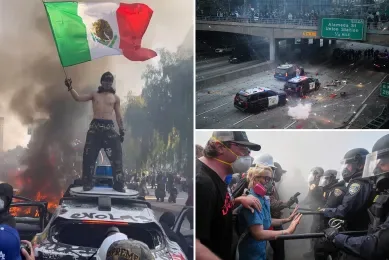 加州公路巡警和洛杉矶警局出动防暴部队清场,强制驱离人群,但骚乱持续蔓延至晚间。暴徒除攻击警车外,还在市区破坏商铺,投掷玻璃瓶和烟花。一名警官在爆炸中几乎丧命,两名摩托车手因冲撞警察被捕。