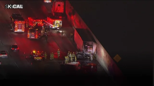 据加州公路巡警(CHP)通报,事故发生时间约为晚上10点40分,地点靠近Sylmar区域。SUV与前方半挂卡车猛烈碰撞,撞击瞬间引发大火,整辆SUV迅速被吞噬在火海中。紧急救援人员赶到时,车辆已严重烧毁,车内两人均被宣布死亡,身份尚未公开。