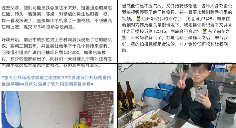 此事件引发了公众对餐饮场所吸烟问题的讨论,特别是在禁烟政策实施的背景下,公众如何行使维权和餐饮店的管理责任等问题。女子的维权行为也引发了对个体在公共场合维护自身权益的广泛讨论,呼吁社会更加尊重公共场合的秩序与他人权利。