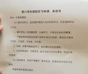 据知情家长透露,这份承诺书要求学生和家长签字同意,确认“自愿”参加周六在校学习,并承诺不对学校提出异议。表面上是尊重个人选择,实则形成了舆论裹挟与心理压力——在集体化教育氛围中,很少有学生敢真正“不签”。一旦拒绝,便意味着可能被视为“不思进取”,甚至影响老师和同学对其评价。