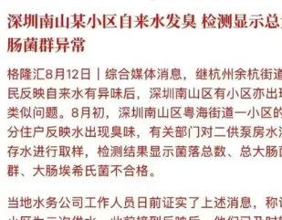 深圳南山自来水污染!暴雨致菌落超标,居民:水有异味,不敢饮用