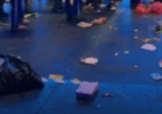 视频中可以看到,海洋馆的走廊和座位区散落着大量塑料瓶、饮料杯和纸屑。观众席上,学生群体占据了大半场地,孩子们嬉笑打闹,甚至有人互相投掷物品。拍摄者语气愤怒:“票价不便宜,环境却像集市,工作人员也不管,真是太糟糕。”